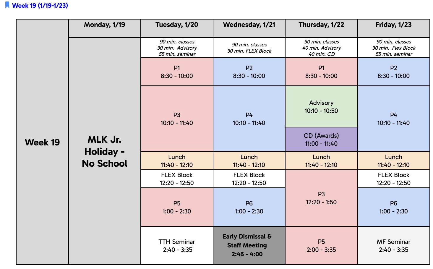 - MLK Day Holiday – Monday, January 19th