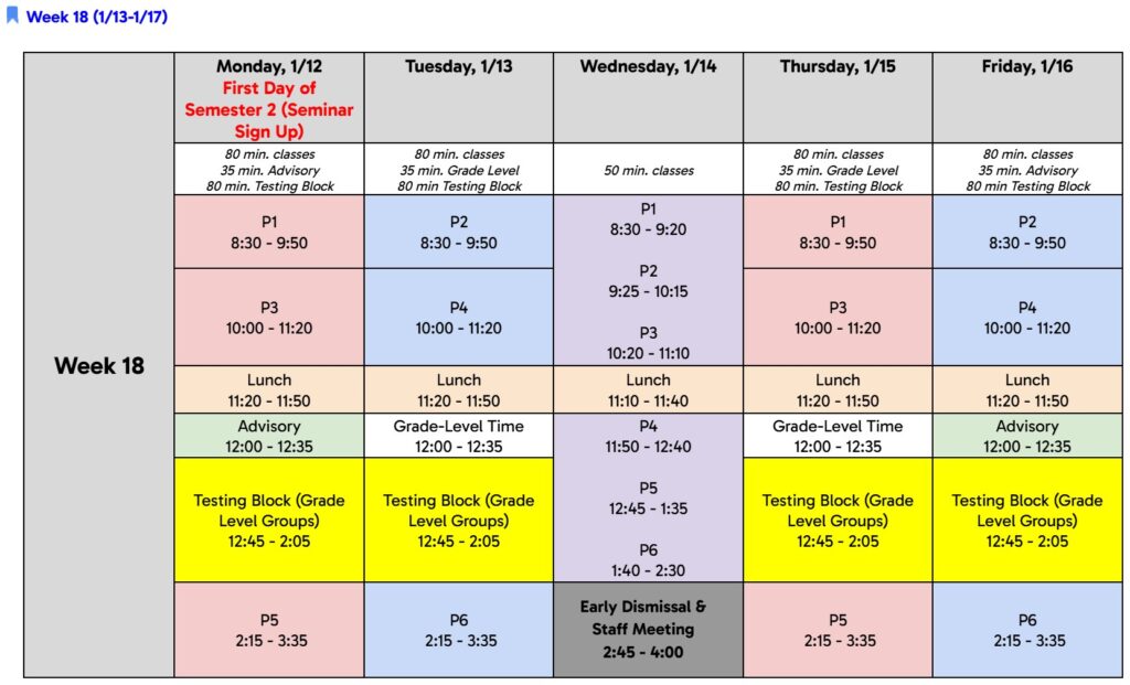Semester 2 Seminars: Students will be given the opportunity to choose new seminars this semester.  They can do so at this link: https://forms.gle/EzF25ofMPcJNdJTX6