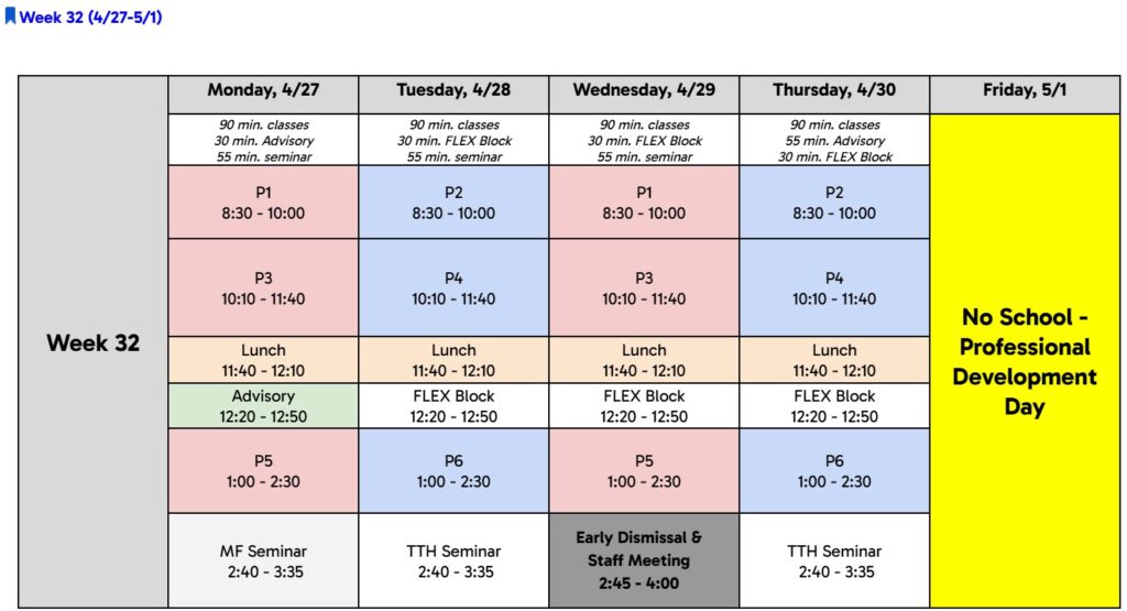 Our 11th grade students had an eventful week as they completed state testing for the CAASPP and CAST tests. Thank you to our Juniors for showing up ready for “Game Time!” They were focused and working hard to demonstrate their proficiency. A milestone was also reached with our final Community Learning Day of the year this past Friday. We are excited for our Senior prom this week on May 1st, and for Staff Appreciation Week the following week!