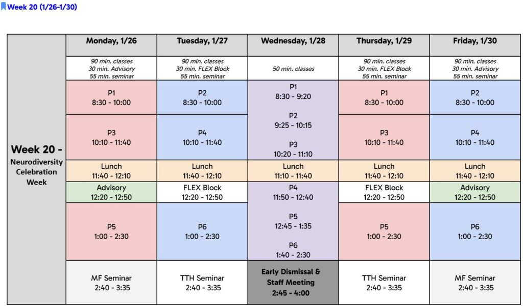 We are also implementing new intervention seminars this semester: Math Intervention for students who need additional support in Math content and Senior Seminar for students who need support in meeting the conditions of the Senior Contract (Passing all required courses, and 90%+ attendance and tardies).